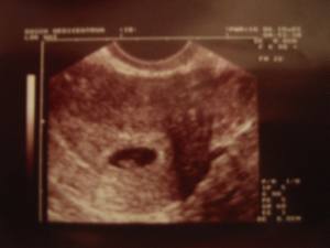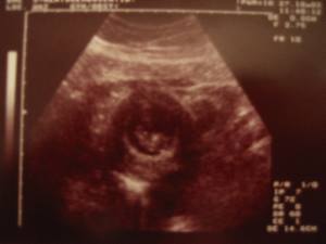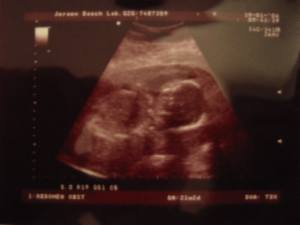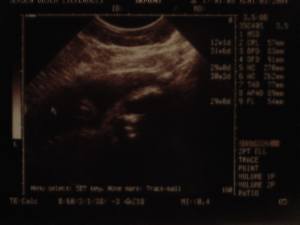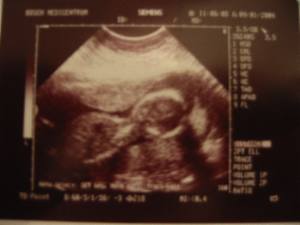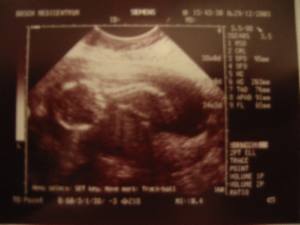 Zo, hier de eerste echte baby foto's....Je moet wel een beetje geoefend oog hebben.... 6-10-2003