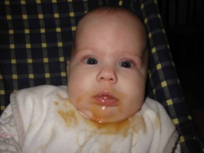 Foto's 10-10-2004 Het eerste fruit hapje.......
