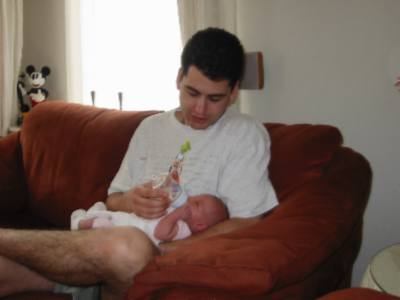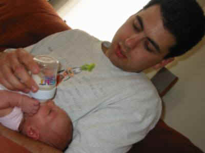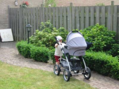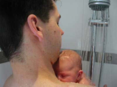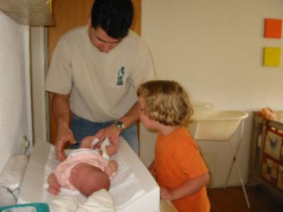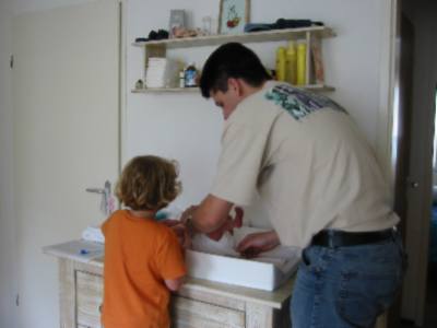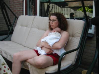 foto's 11-6-2004 Lekker douchen met papa Kijk daar hebben we Mirthe ook. Samen een schone broek aan doen!