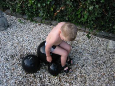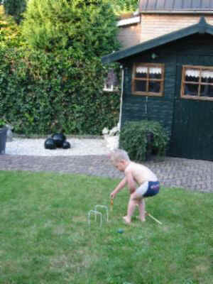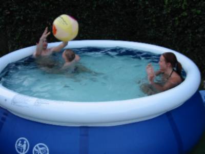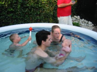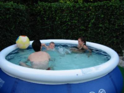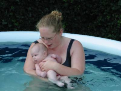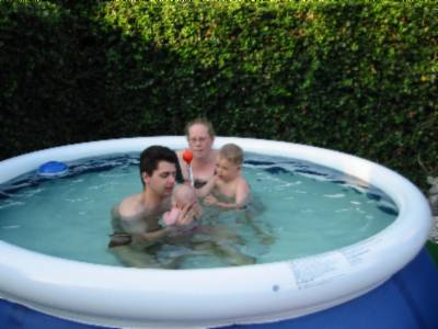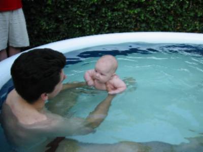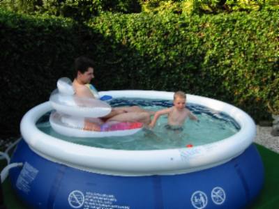 Foto's 29-7-2004 Even afkoelen ! Lekker in het zwembad met papa