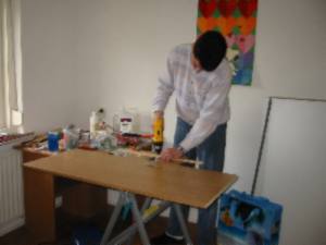 bob zelf met boormachine aan de gang........zagen doet de fixit !