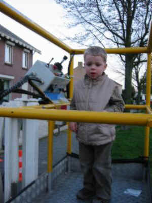 Ook Tim moest even komen kijken bij de grote "liftie"